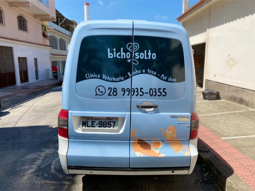 Plotagem em adesivo fosco com adesivo perfurado nos vidros traseiros