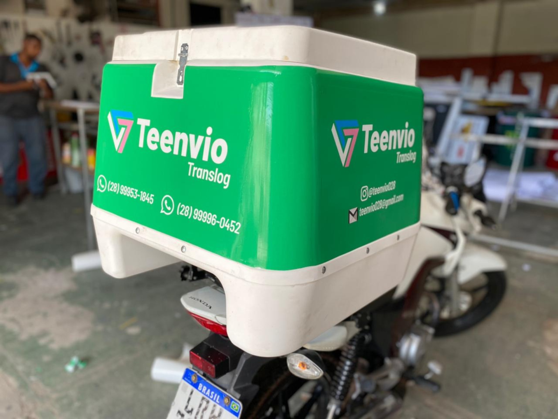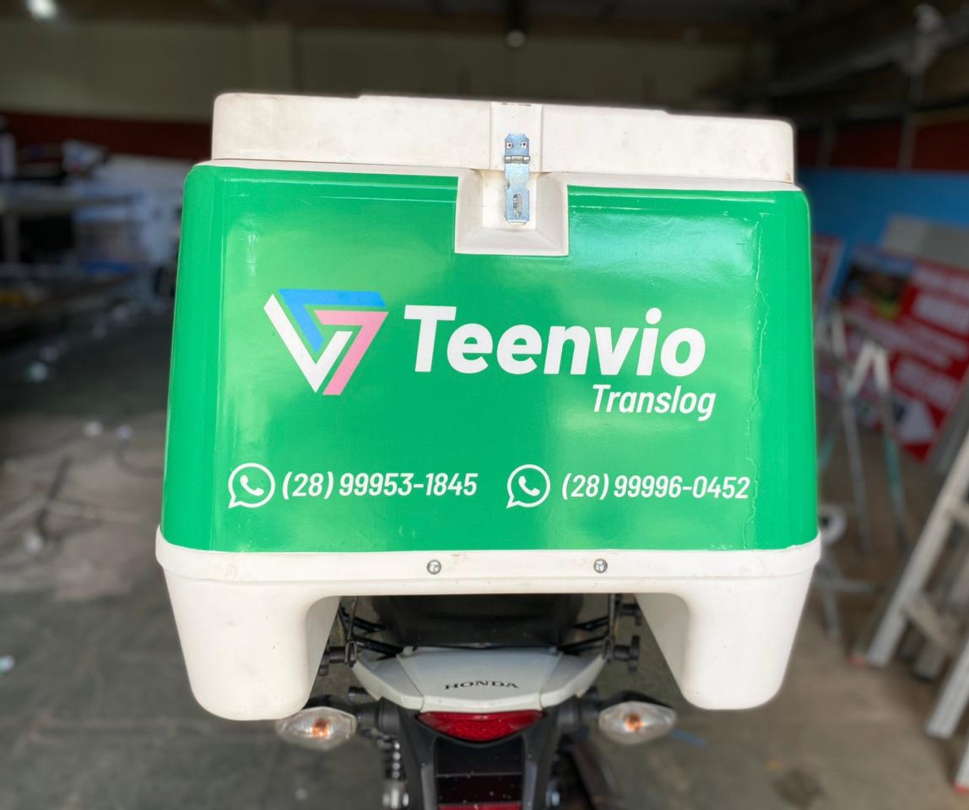 Plotagem de adesivo brilhoso em baú de moto