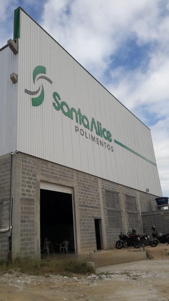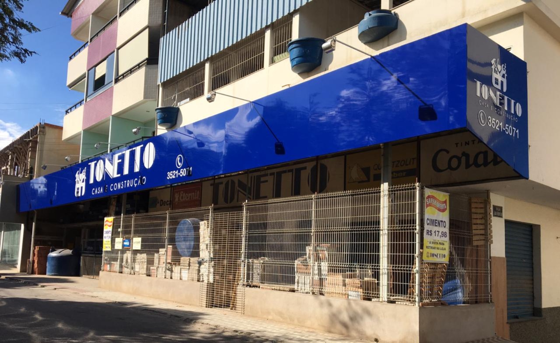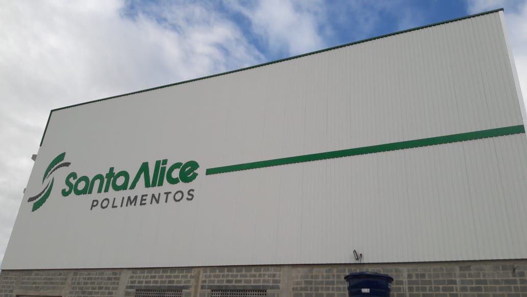 Fachada curvada de painel em lona com cantoneiras em alumínio